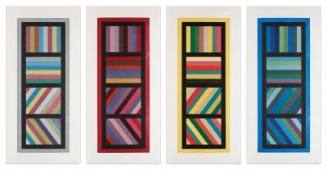 Bands of Lines in Four Directions (Gray on Colors - set of 4)